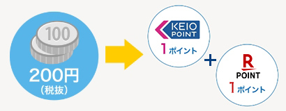 京王ストア・キッチンコートでのお買上げの際、精算前に京王パスポートカード、楽天ポイントカードをご提示ください。お買上げ200円(税抜)につき、それぞれのカードにを1ポイント差し上げます。